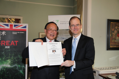 On February 27th, the International Tribology Council announced the highest International award in tribology -- 2011 Annual Tribology Award (Tribology Gold Medal) to Professor Xue Qunji, the alumni of Shandong University, Academician of the Chinese Academy of Engineering, Director of the Academic Committee of Lanzhou Institute of Chemical Physics, Chinese Academy of Sciences, Deputy director of the Academic Committee of the Key Laboratory of Colloid and Interface Chemistry of the Ministry of Education, in recognition of his outstanding research in tribology and contributions to chinese economy. This is the first time that the award is granted to a Chinese. The awards ceremony was held at the British Embassy in Beijing. The British ambassador, Lord Sebstian Wood gave the award to Prof. Xue Qunji. Leaders in the Chinese Academy of Sciences, Chinese Academy of Engineering, Ministry of Science and Technology of the P. R. China, the National Natural Science Foundation of China, as well as Chinese Mechanical Engineering Society and its Tribology Division attended the ceremony.